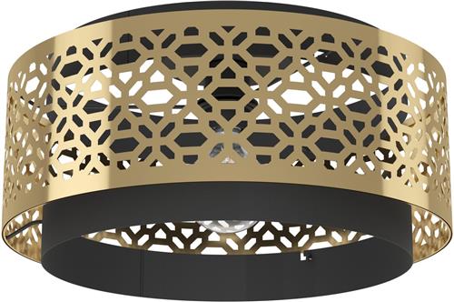 Glanzend en opvallend, dat is plafondlamp Sandbach van EGLO. Dit pareltje weet aan elk plafond de show te stelen. Deze luxueuze plafondlamp is gemaakt van hoogwaardig staal en heeft een diameter van 42 cm. De lamp heeft een elegant design met een combinatie van goud en zwart, wat hem eenvoudig toepasbaar maakt in ieder interieur. Met de E27 fitting is deze lamp geschikt voor een lichtbron van maximaal 40W, waardoor je een sfeervolle verlichting creëert.