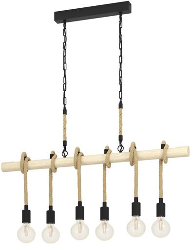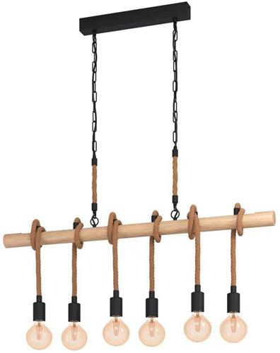 EGLO Youngstown Hanglamp - E27 - 100 cm - Zwart/Bruin