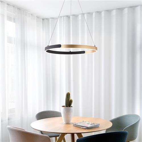 Met haar ronde vorm en strak design zorgt de hanglamp Ivana voor een luxe uitstraling in jouw interieur. Uitgevoerd in zwart met goud en hangend aan slanke snoeren, lijkt het alsof Ivana elegant boven jouw eettafel zweeft. Deze fraaie lamp komt perfect tot haar recht in een minimalistische setting en geeft de ruimte een luxueuze uitstraling. Dankzij de 3-staps dimbare LEDs straalt Ivana een warm wit licht uit (3000K), waardoor je eenvoudig de gewenste sfeer kunt creëren.