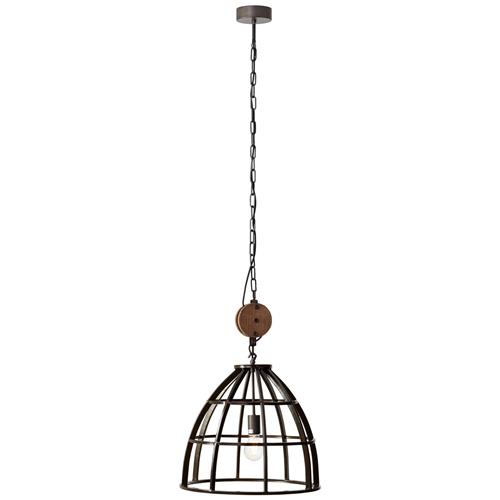 Hanglamp Matrix XL landelijk gevlamd staal met hout 144 x Ø 48 cm 60W E27