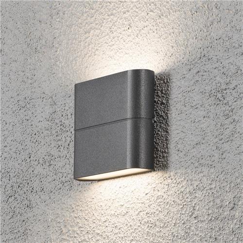 De Konstsmide Chieri 7972-370 is een modern ontworpen LED wandlamp die perfect blendt in elke buitenomgeving. Met een breedte van 11cm, hoogte van 9cm en diepte van slechts 3cm, is dit armatuur compact en stijlvol. De lamp is vervaardigd uit hoogwaardig aluminium en afgewerkt in antraciet, waardoor hij duurzaam en weerbestendig is.