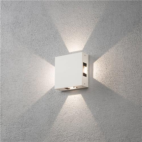 Konstsmide Cremona Wit is een prachtige buitenwandlamp die zowel functioneel als decoratief is. Met zijn rechthoekige vorm en matte witte kleur is deze lamp een elegante toevoeging aan elke buitenmuur. De lamp heeft vier lichtpunten met LED-verlichting, elk met een wattage van 3 W, wat zorgt voor een heldere en energiezuinige verlichting. Dankzij de mogelijkheid om de lichtbundel individueel aan te passen van 0 tot 90°, kun je de verlichting precies naar wens instellen.