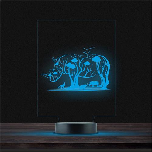 Led Lamp Met Gravering - RGB 7 Kleuren - Neushoorn