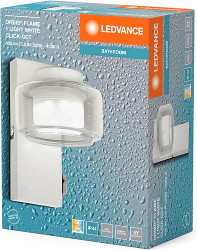 LEDVANCE ORBIS Flame wand- en plafondlamp met LED, wit, 5,5W, 350lm, 3000/4000K, kleurtemperatuur instelbaar via wandschakelaar (koud wit en warm wit), IP44 bescherming tegen vreemde voorwerpen en spatwater