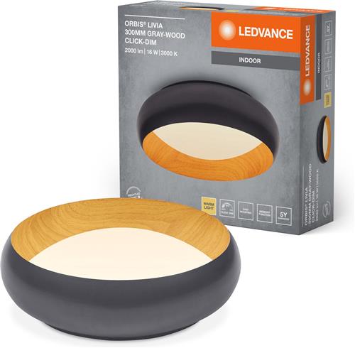 - De goedkoopste webshop om LEDVANCE ORBIS Livia LED plafondlamp met metalen ring, grijs/hout decor, 16W, 750lm, 3000K, 300mm, 830 vriendelijk warm wit, dimbaar in 3 niveaus door te klikken, IP20, inclusief schroeven/pluggen te kopen is voor het laatst gecontroleerd op vrijdag 24 oktober 2025.