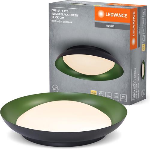 - Bij Bol.com kun je LEDVANCE Orbis Plate LED plafondlamp, zwart-groen, 35W, 1700lm, 3000K, 430mm, 830 vriendelijk warm wit, dimbaar in 3 niveaus door te trappen, IP20 bescherming, inclusief montageschroeven en pluggen kopen voor de prijs van € 70,00. Dit is vandaag de goedkoopste webshop.