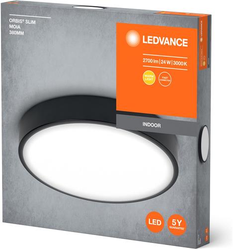 - Bij Bol.com kun je LEDVANCE ORBIS Slim Moia plafondlamp, zwart, 24W, 2600lm kopen voor de prijs van € 73,39. Dit is vandaag de goedkoopste webshop.