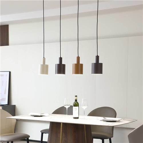 De Lindby hanglamp is een prachtige toevoeging aan elke eet- of woonkamertafel. Met vier verschillend gekleurde kappen in donkerbruin, koffiebruin en beige, geeft deze hanglamp een unieke uitstraling, zelfs wanneer deze niet brandt. Gemaakt van hoogwaardig ijzer en met een hoogte van 21,5 cm, past deze lamp perfect boven een keukentafel.