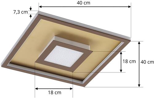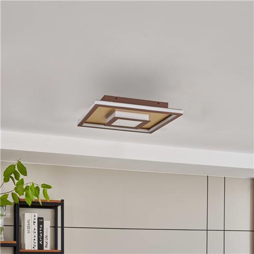 Creëer geweldige lichtaccenten in uw huis met de hoekige LED plafondlamp Pekela van Lindby. Deze unieke lamp in de kleuren roest en goud geeft een bijzonder tintje aan uw interieur. Met de meegeleverde afstandsbediening kunt u eenvoudig de lichtsterkte aanpassen en zorgen voor de perfecte sfeer in elke ruimte.