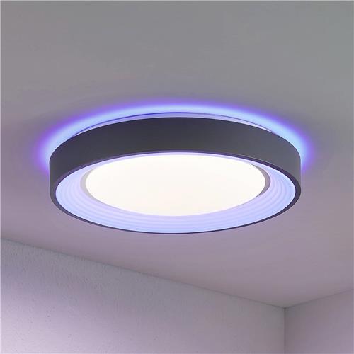 Lindby - LED plafondlamp - RGB - met dimmer - CCT - 1licht - Metaal, kunststof - H: 8.5 cm - wit, donkergrijs - Inclusief lichtbron