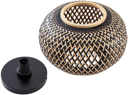 De diameter van 38 cm en de hoogte van 25.8 cm maken deze plafondlamp een eyecatcher in elke ruimte. De combinatie van zwart en donker hout geeft een warm en gezellig effect, waardoor de lamp zowel functioneel als decoratief is. Het armatuur is geschikt voor zowel de woonkamer als de eetkamer, waardoor je op verschillende plekken in huis van de sfeervolle verlichting kunt genieten.