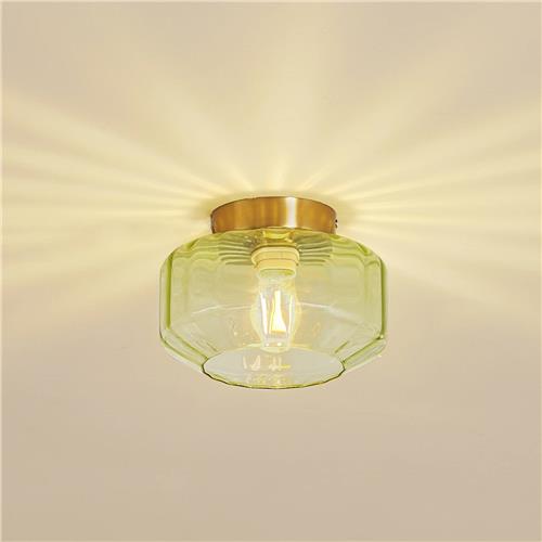 Laagste prijs € 36,95 voor Lindby - plafondlamp - 1licht - Glas, ijzer - H: 15.3 cm - E27 - groen, messing is gemeten op 09-01-2026.