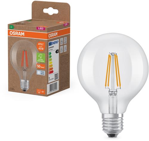 - Bij Bol.com kun je Osram LED lamp in classic globe shape, with decorative LED filament, energy efficiency class A, E27, 5 W, 1055 lm, 4000 K, cool white. 100% light straight away, with no warming up. Low flickering kopen voor de prijs van € 8,04. Dit is vandaag de goedkoopste webshop.