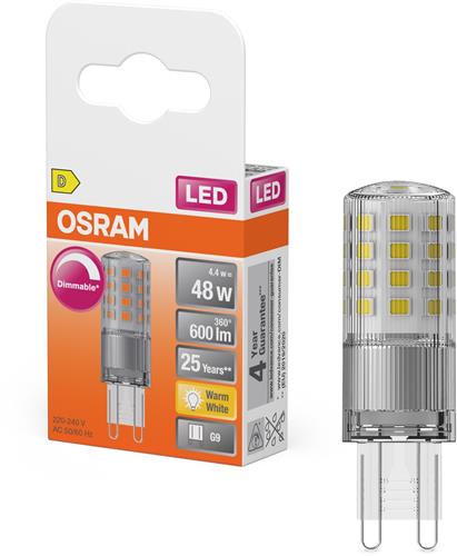 - Bij Lampen24 kun je OSRAM LED PIN LED-lamp van helder gekleurd kunststof, met 4,4 W voor 600 lm, warmwit licht met 2700 K, veelkleurig, retrofit-fitting G9, CRI 80, EEK D, dimbaar. kopen voor de prijs van € 12,90. Dit is vandaag de goedkoopste webshop.