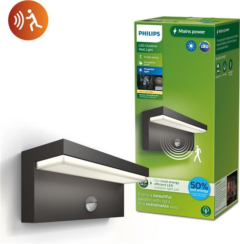 | Verpakkingsinhoud | 1x Philips outdoor wandlantaarn - anthraciet - Met sensor |