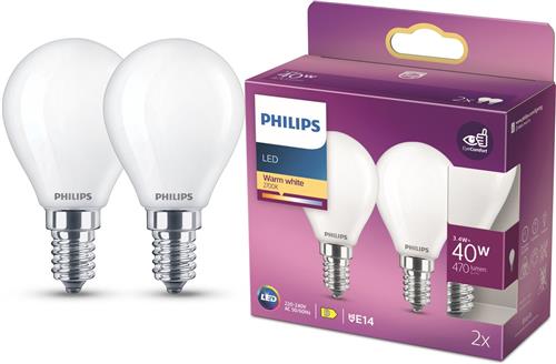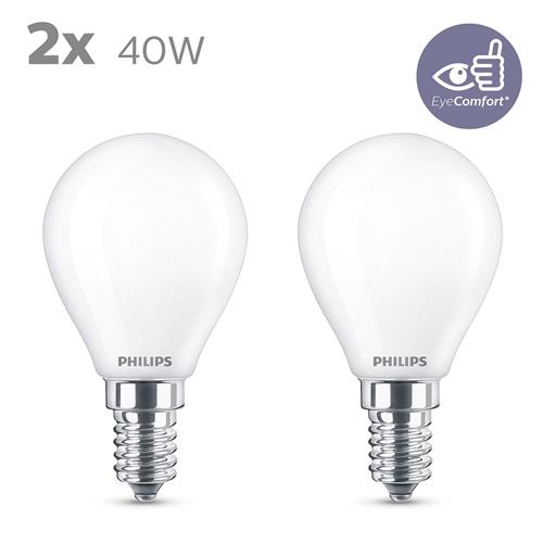 Philips energiezuinige LED Kogellamp Mat - 40 W - E14 - warmwit licht - 2 stuks - Bespaar op energiekosten
