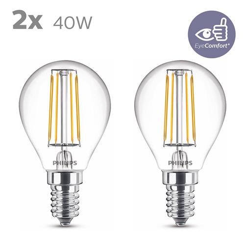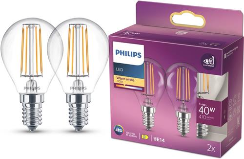 Maak kennis met de Philips energiezuinige LED Kogellampen, een set van 2 stuks, die ideaal zijn om te besparen op energiekosten. Met een vermogen van 4.3 W en een lichtopbrengst van 470 lumen per lichtpunt, zorgen deze LED-lampen voor helder warm wit licht met een kleurtemperatuur van 2700 K. Dankzij het lage energieverbruik en de lange levensduur van maar liefst 15000 uur, zijn deze kogellampen niet alleen goed voor je portemonnee, maar ook voor het milieu.