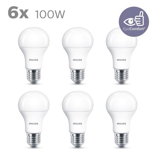 - De goedkoopste webshop om Philips energiezuinige LED Lamp Mat - 100 W - E27 - warmwit licht -6 stuks - Bespaar op energiekosten te kopen is voor het laatst gecontroleerd op woensdag 22 oktober 2025.