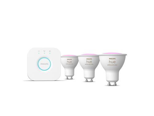 Met het Philips Hue Starterkit haal je ultieme slimme verlichting in huis. Deze set bestaat uit drie White and color ambiance LED-spots met GU10-fitting en een Hue Bridge. Met de keuze uit maar liefst 16 miljoen kleuren en 50.000 wittinten, kun je voor elk moment de perfecte sfeer creëren. Of je nu wilt ontspannen met warmwit licht of gefocust wilt werken met koelwit licht, met deze spots kan het allemaal.
