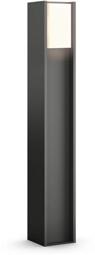 De Philips Hue Turaco sokkellamp in de kleur zwart zorgt voor een sfeervolle verlichting in jouw tuin of op je terras. Met het warmwitte licht creëer je de perfecte ambiance voor lange zomeravonden of gezellige winterdagen. De lamp heeft een enkel lichtpunt en is gemaakt van hoogwaardig aluminium, waardoor hij duurzaam en weerbestendig is.