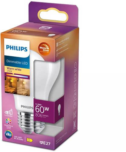 - Bij Bol.com kun je Philips LED Lamp Mat 60W E27 Dimbaar Warm Wit Licht kopen voor de prijs van € 7,50. Dit is vandaag de goedkoopste webshop.