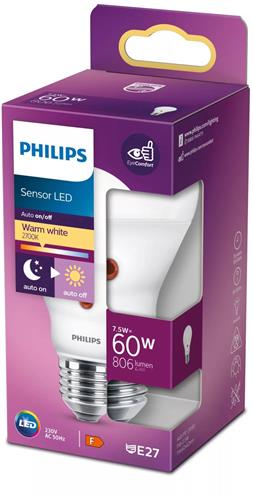 - Bij Bol.com kun je Philips Sensor LED Lamp 60W E27 Warm Wit kopen voor de prijs van € 12,46. Dit is vandaag de goedkoopste webshop.