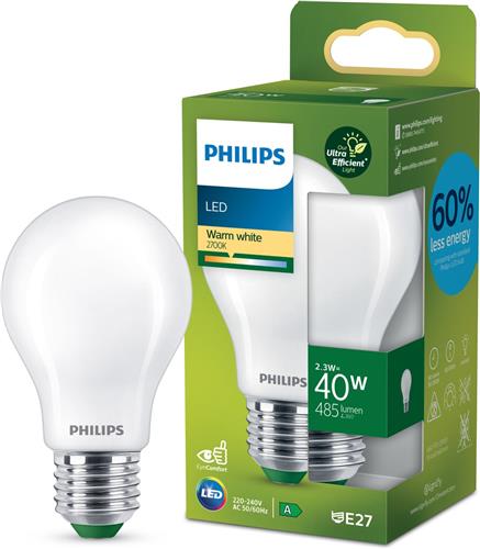 - Bij Lampen24 kun je Philips Ultra Efficient LED lamp Mat - 40 W - E27 - Warmwit licht kopen voor de prijs van € 6,09. Dit is vandaag de goedkoopste webshop.