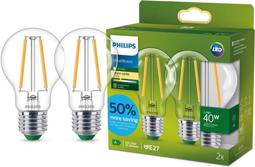- Bij Bol.com kun je Philips Ultra Efficient LED lamp Transparant - 40 W - E27 - Warmwit licht - 2-pack kopen voor de prijs van € 13,49. Dit is vandaag de goedkoopste webshop.