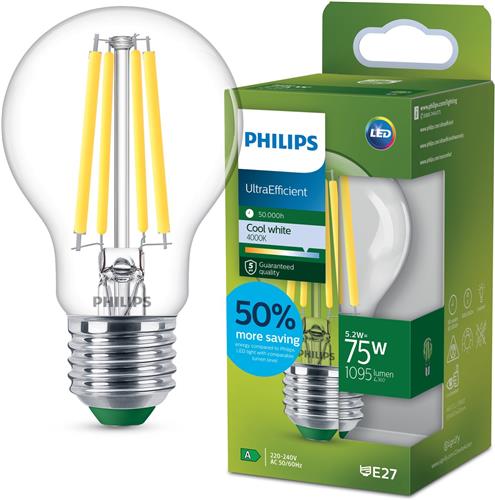 - Bij Lampen24 kun je Philips Ultra Efficient LED lamp Transparant - 75 W - E27 - Koelwit licht kopen voor de prijs van € 8,63. Dit is vandaag de goedkoopste webshop.