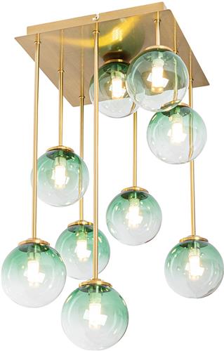 Haal de sfeer van de art deco stijl in huis met de QAZQA Athens plafondlamp. Deze prachtige lamp met 9 lichtpunten is gemaakt van stalen materialen in de kleur groen en goud, afgewerkt met messing accenten. Een absolute eyecatcher voor in de woonkamer, slaapkamer of keuken!