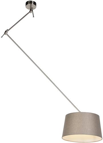 De QAZQA Blitz is een elegante en tijdloze hanglamp die perfect past in diverse ruimtes zoals de woonkamer, slaapkamer en keuken. Deze prachtige lamp heeft een rustig karakter dankzij de taupe kleurige kap en het stalen armatuur. Met een totale hoogte van 130 cm en een kap met een diameter van 35 cm, voegt de Blitz een stijlvolle touch toe aan elk interieur.