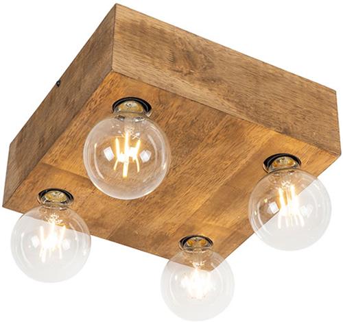 De QAZQA Bloc is een prachtige landelijke plafondspot die perfect licht biedt met zijn 4 lichtpunten. Deze opbouwspot heeft een warme uitstraling dankzij het gebruik van hout als materiaal. Met een hoogte van 10 cm, breedte van 30 cm en lengte van 30 cm is deze spot perfect voor ruimtes zoals de woonkamer, slaapkamer of keuken. Om de plafondspot compleet te maken, heb je 4 E27 fitting lichtbronnen nodig van maximaal 10 Watt (niet inbegrepen).