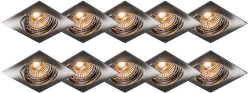 QAZQA edu square - Moderne Inbouwspot - 10 stuks - L 90 mm - Staal - Woonkamer | Slaapkamer | Keuken