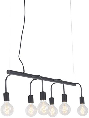 QAZQA facile - Moderne Hanglamp voor boven de eettafel | in eetkamer - 6 lichts - L 1000 mm - Zwart - Woonkamer | Slaapkamer | Keuken