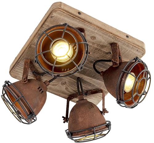 Verrijk jouw industriële interieur met de QAZQA Gina plafondspot. Dit unieke spotje in roestbruin en hout geeft een rauwe uitstraling aan elke kamer. De spot wordt geleverd met vier slimme GU10 lichtbronnen die elk maximaal 25 Watt kunnen leveren en gemiddeld 25.000 branduren hebben. Je kunt de lichtbronnen naar wens instellen op elke gewenste kleur tussen 2200 en 4000 Kelvin, met een maximum van 350 lumen. Dankzij de handige dimfunctie kun je de verlichting eenvoudig aanpassen naar de gewenste sfeer.