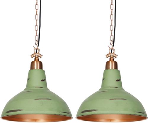 QAZQA Goliath - Retro Hanglamp - 2 stuks - Ø 345 mm - Groen - Industrieel - Woonkamer | Slaapkamer | Keuken