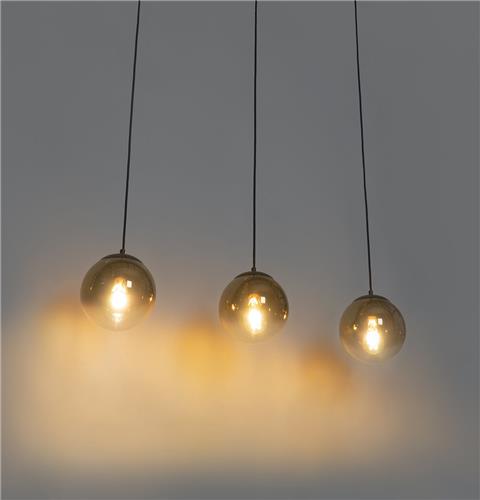Creëer een sfeervolle ambiance boven je eettafel met de QAZQA Pallon hanglamp. Deze Art Deco hanglamp bestaat uit drie glazen bollen afgewerkt in een elegante combinatie van zwart en goud, wat zorgt voor een warm en stijlvol lichteffect in je eetkamer. De lamp is ideaal voor boven de eettafel in je woonkamer, slaapkamer of keuken.