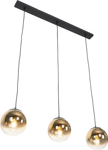 QAZQA pallon - Art Deco Hanglamp eettafel voor boven de eettafel | in eetkamer - 3 lichts - L 100 cm - Zwart Goud - Woonkamer | Slaapkamer | Keuken