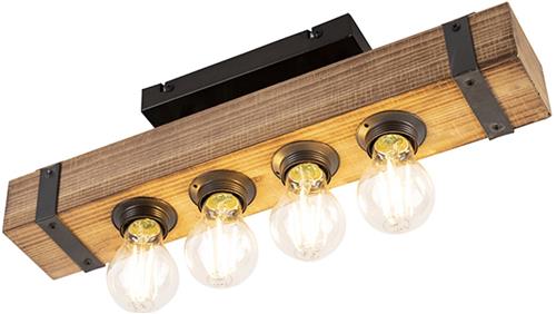 | Verpakkingsinhoud | Industriële plafondlamp hout met staal 4-lichts - Reena + indien nodig handleiding en bijbehorende bevestigingsmaterialen. |