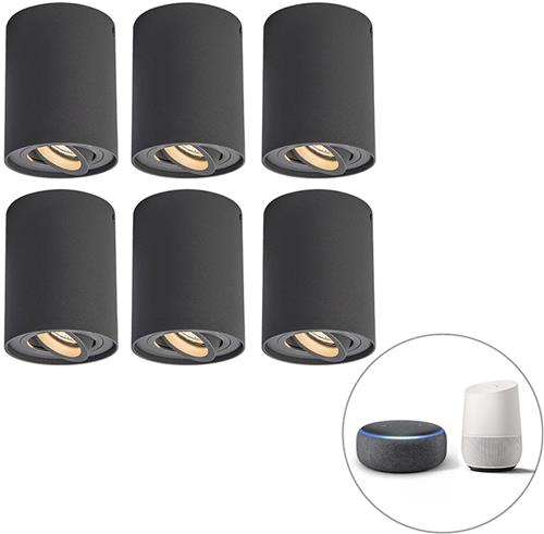 QAZQA rondoo up - Moderne LED Smart Plafondspot | Spotje | Opbouwspot incl. wifi - 6 stuks - Ø 9.5 cm - Donkergrijs - Woonkamer | Slaapkamer | Keuken