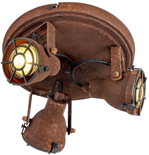 QAZQA sorra - Industriele Plafondspot | Spotje | Opbouwspot - 3 lichts - Ø 210 mm - Roestbruin - Industrieel - Woonkamer | Slaapkamer | Keuken