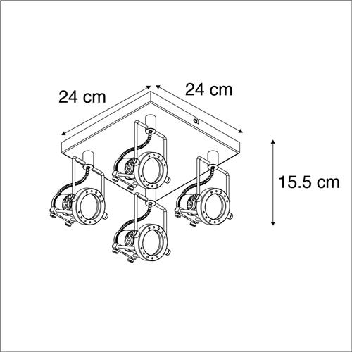 QAZQA suplux - Industriele Plafondspot | Spotje | Opbouwspot - 4 lichts - H 155 mm - Staal - Industrieel - Woonkamer | Slaapkamer | Keuken