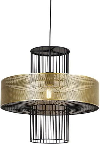 QAZQA tess - Design Hanglamp - 1 lichts - Ø 50 cm - Zwart Goud - Woonkamer | Slaapkamer | Keuken