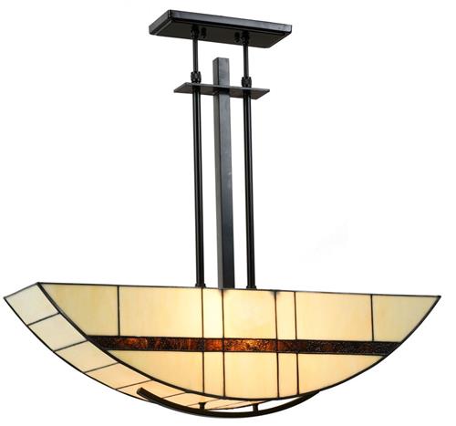 De Tiffany hanglamp Geometric is een wonderschone hanglamp in halve maan vorm, perfect voor boven een tafel, bar of in een hal. Met de nadruk op horizontale lijnen en een excentriek design trekt deze lamp zeker bewondering. Het zwarte, metalen armatuur vormt een perfecte eenheid met het paarlemoer glas en de vlakverdeling die hun oorsprong vinden in de Japanse architectuur. Het roodbruine glas geeft deze royale hanglamp een pittige uitstraling en is ideaal te combineren met andere Tiffany lampen uit de Geometric serie.