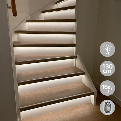 - Bij Bol.com kun je Trapverlichting led bewegingssensor set - Led strips 130 cm met helder wit licht - Set in zwart profiel voor max. 16 treden - Bedienen via dimmer kopen voor de prijs van € 317,85. Dit is vandaag de goedkoopste webshop.
