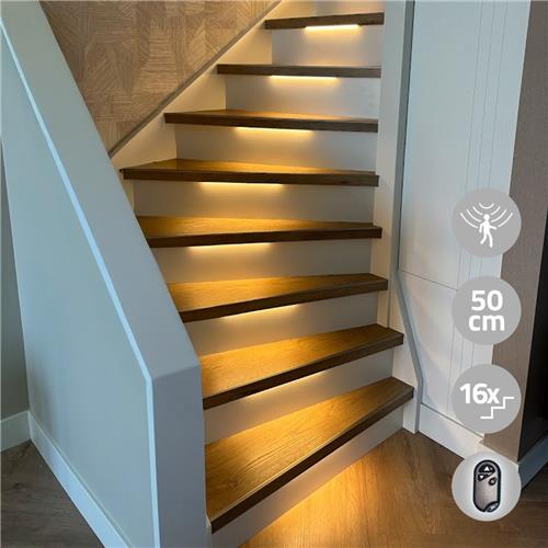 - Bij Bol.com kun je Trapverlichting led bewegingssensor set - Led strips 50 cm met warm wit licht - 2700K - Set voor max. 16 treden - Eenvoudig te bedienen via dimmer kopen voor de prijs van € 127,85. Dit is vandaag de goedkoopste webshop.