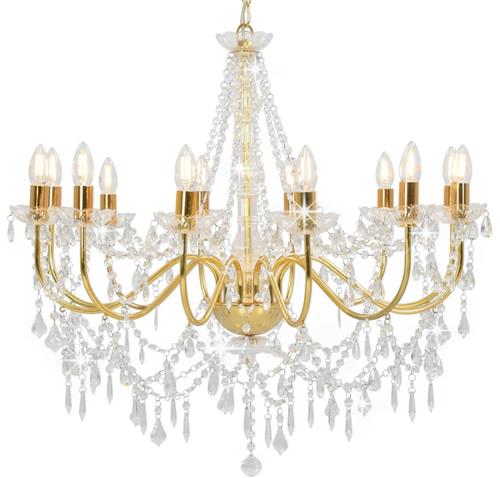 Laagste prijs € 199,49 voor vidaXL - Kroonluchter - met - kralen - 12xE14 - goudkleurig is gemeten op 19-06-2025.