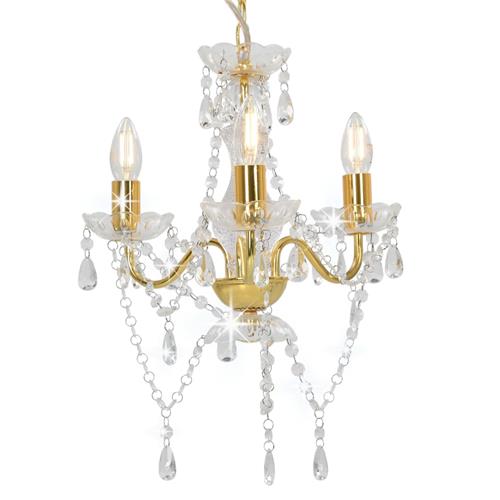 Maak een statement in je interieur met deze prachtige vidaXL kroonluchter met glinsterende kralen. Het extravagante en chique ontwerp van de kroonluchter zal direct de aandacht trekken en een vleugje elegantie toevoegen aan elke ruimte. De transparante kralen en het gouden 3-armige frame zorgen voor een luxueuze uitstraling en een optimale verlichting.