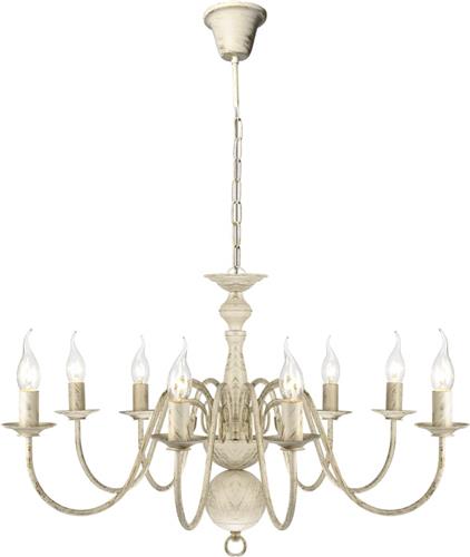 De kroonluchter heeft 8 lampen met een fitting van E14. Hij heeft een afmeting van 80 x 45 cm (Ø x H) en de totale hoogte is 93,5 cm. De lamp werkt op een spanning van 230 V en heeft een vermogen van maximaal 40 W. Let op, de peertjes worden niet meegeleverd bij de levering.