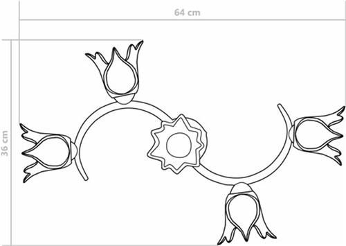De tulpvormige lampenkappen zorgen voor een sfeervolle verlichting, terwijl de lamp gemakkelijk te onderhouden is met een vochtige doek. Met een totale afmeting van 64 x 36 x 17 cm en een diameter van 10 cm voor elke lampenkap, past deze plafondlamp moeiteloos bij verschillende interieurstijlen.